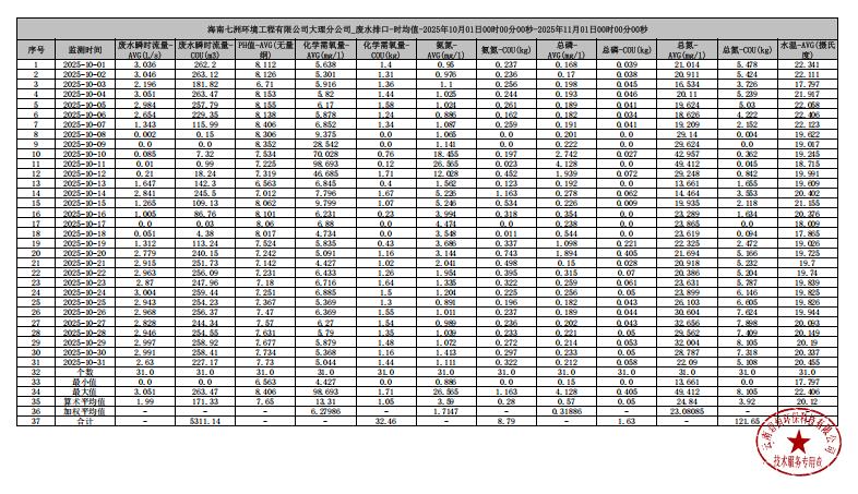 海南七洲環(huán)境工程有限公司大理分公司2025年10月月報(bào)