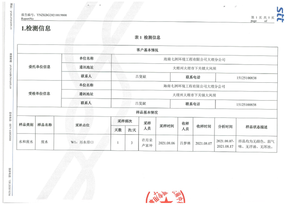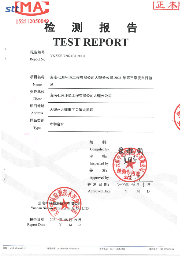 海南七洲環(huán)境工程有限公司大理分公司2021年第三季度自行監(jiān)測