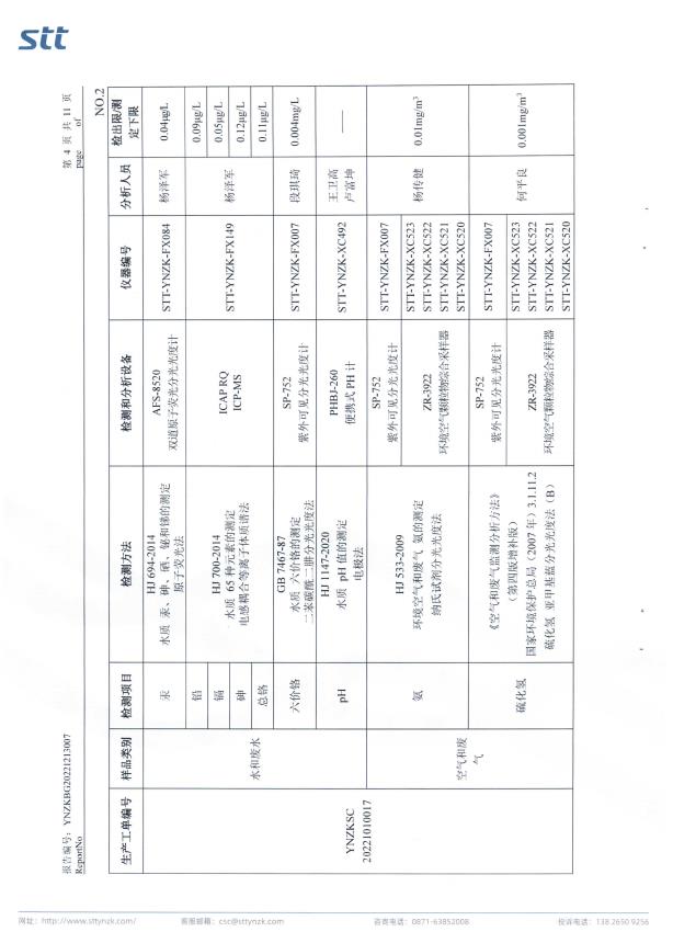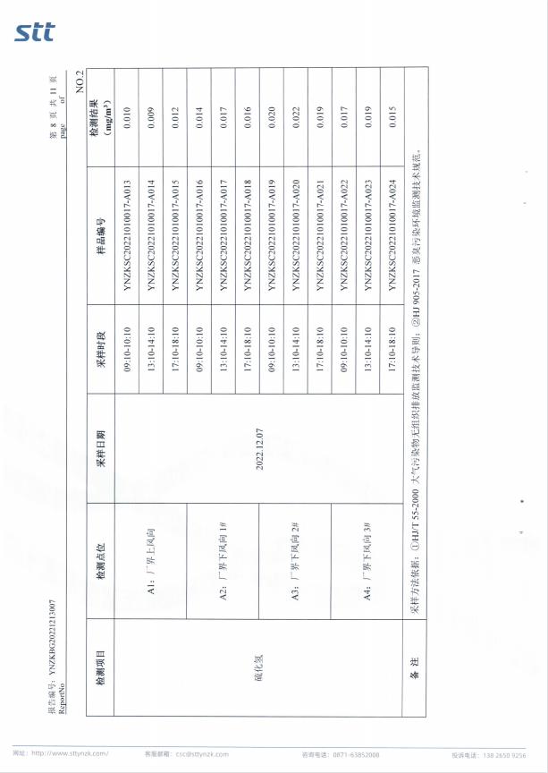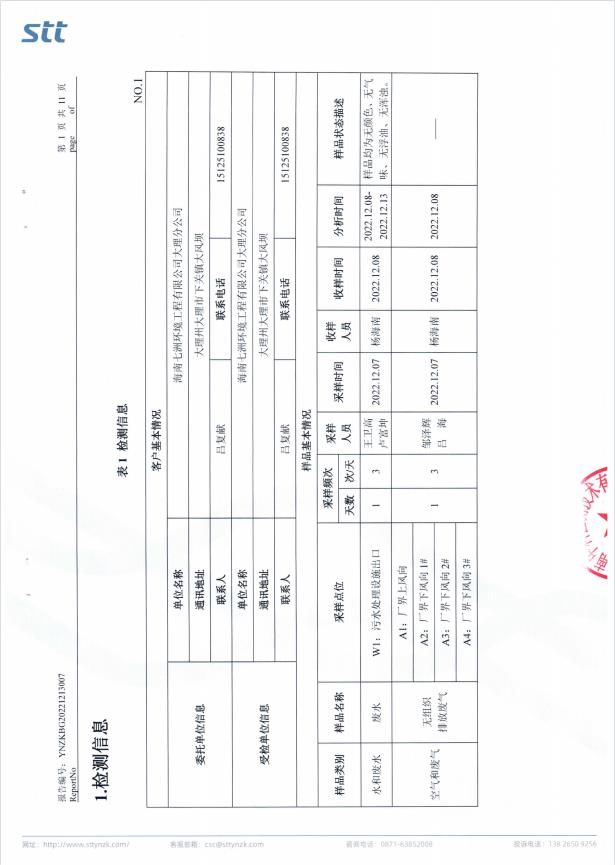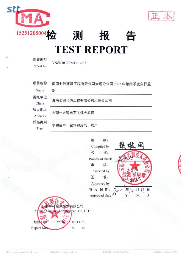 海南七洲環境工程有限公司大理分公司2022年第四季度自行監測