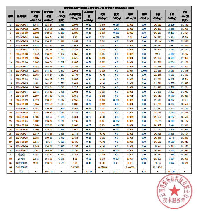 海南七洲環境工程有限公司大理分公司2024年3月月報