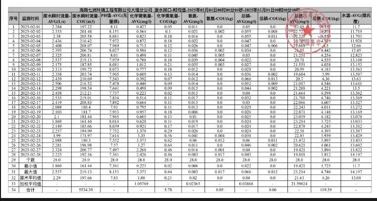 海南七洲環(huán)境工程有限公司大理分公司2025年2月月報