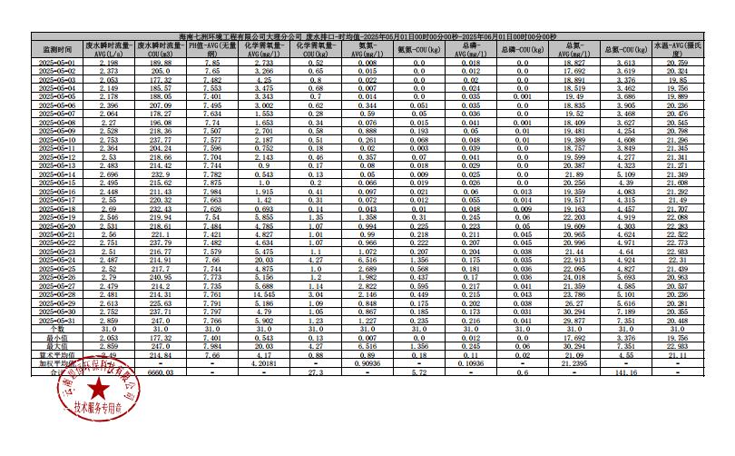 海南七洲環境工程有限公司大理分公司2025年5月月報