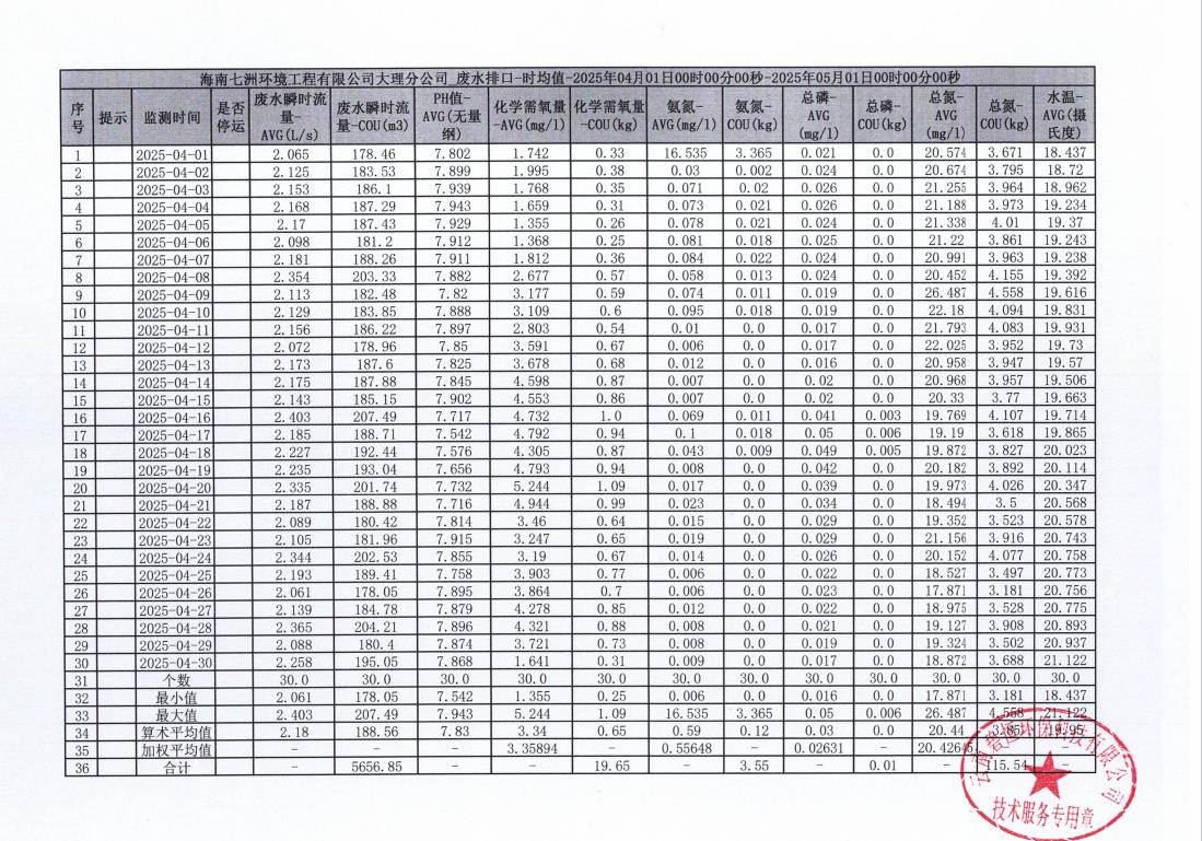 海南七洲環(huán)境工程有限公司大理分公司2025年4月月報
