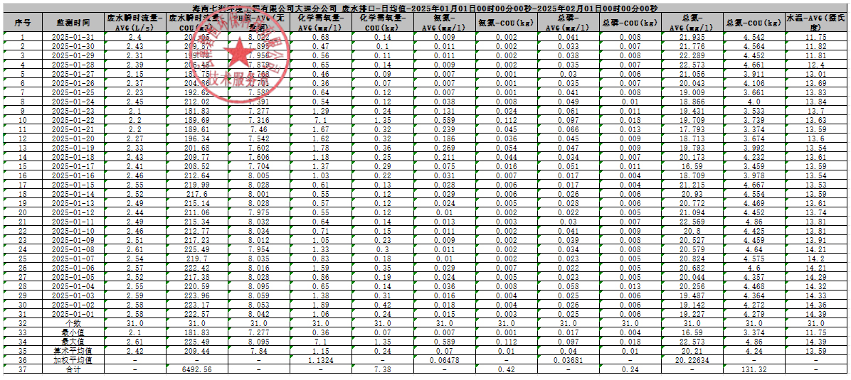 海南七洲環境工程有限公司大理分公司2025年1月月報